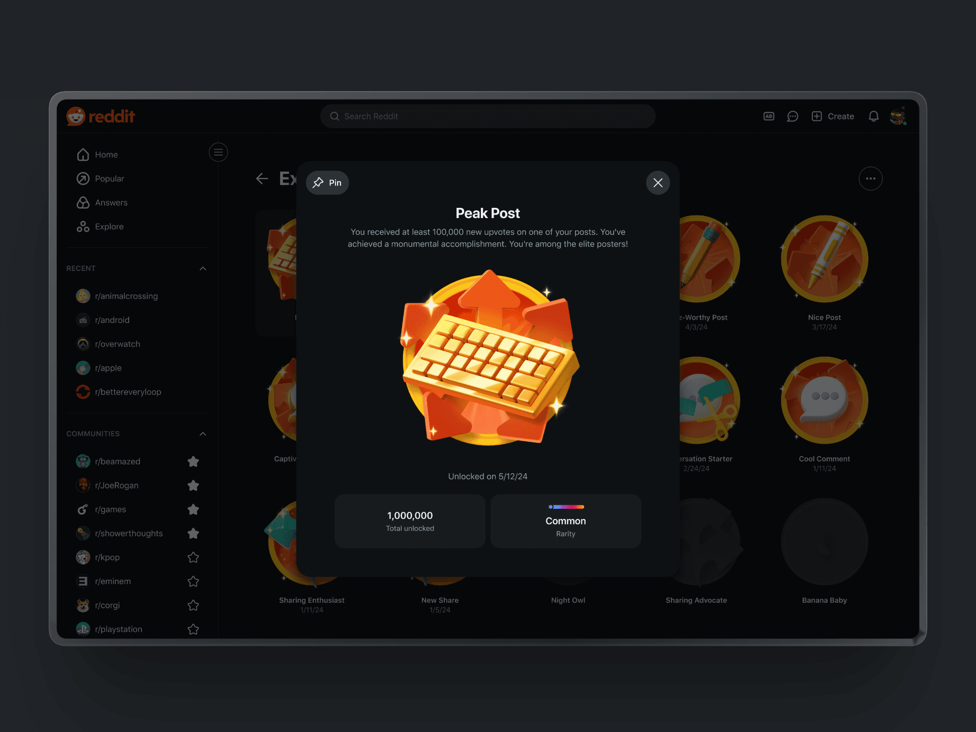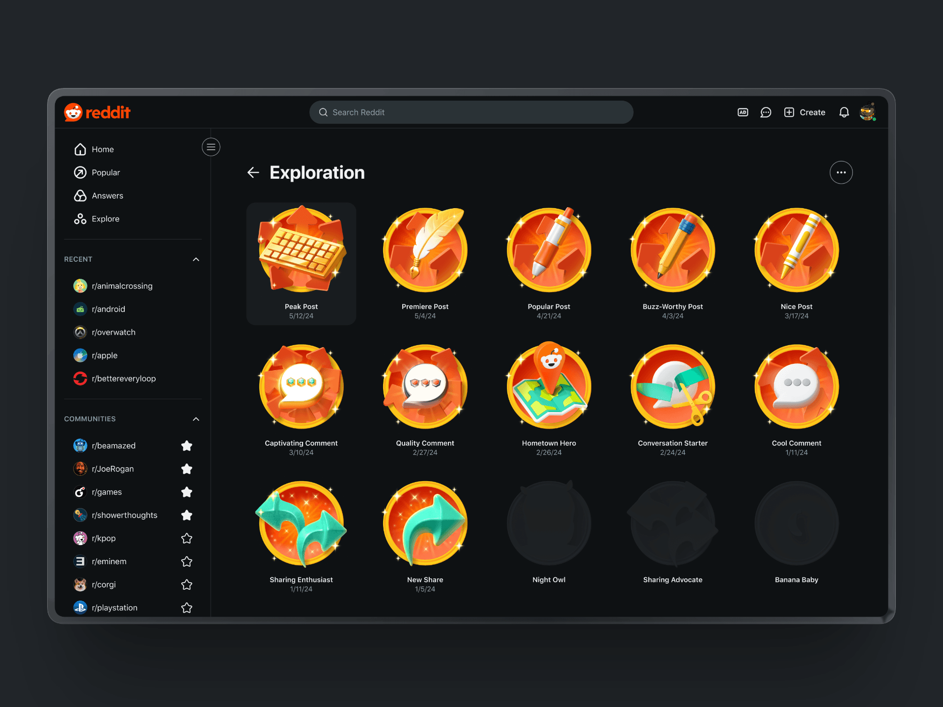 A platform-wide challenge system aimed at driving key contribution metrics. By creating distinct paths for new users and power users, the system successfully gamified the experience, spinning up a new culture of "achievement hunters" and increasing engagement across the board.