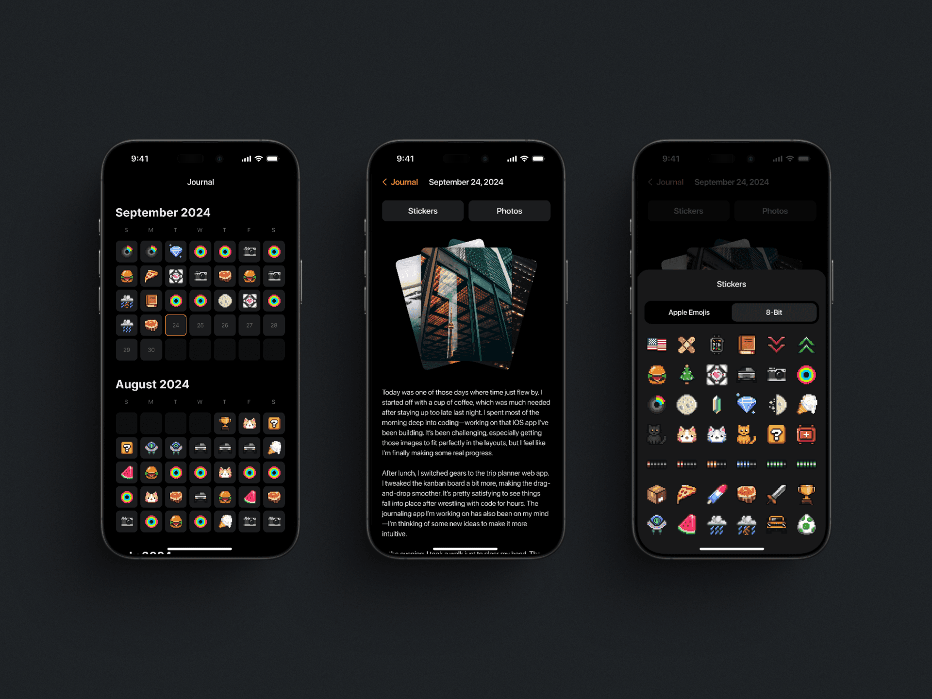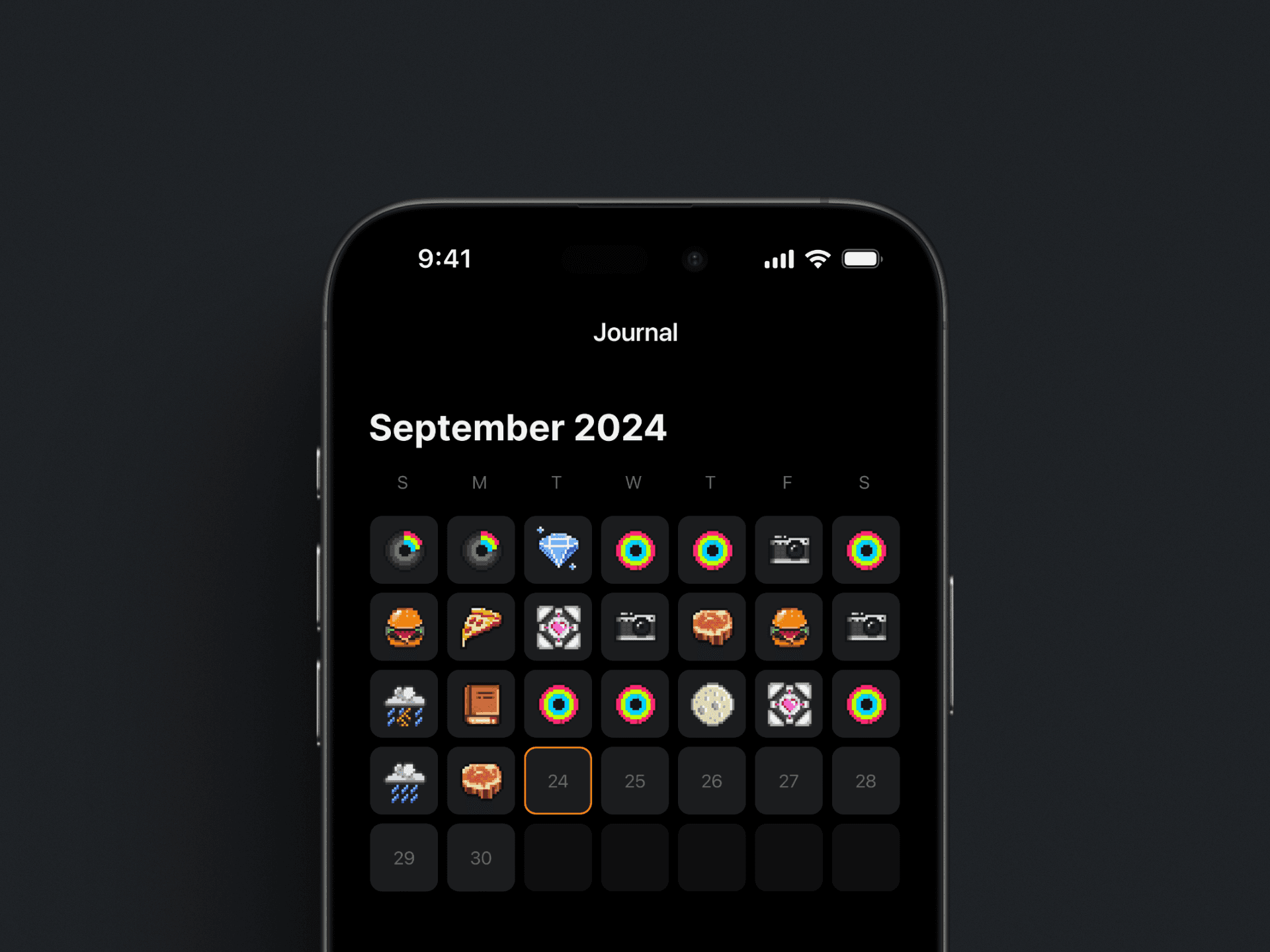 Sticker Journal reimagines the daily log by replacing words with art. I designed and illustrated a library of hand-crafted pixel icons, allowing users to capture the theme of their day to build a visual calendar of their memories.