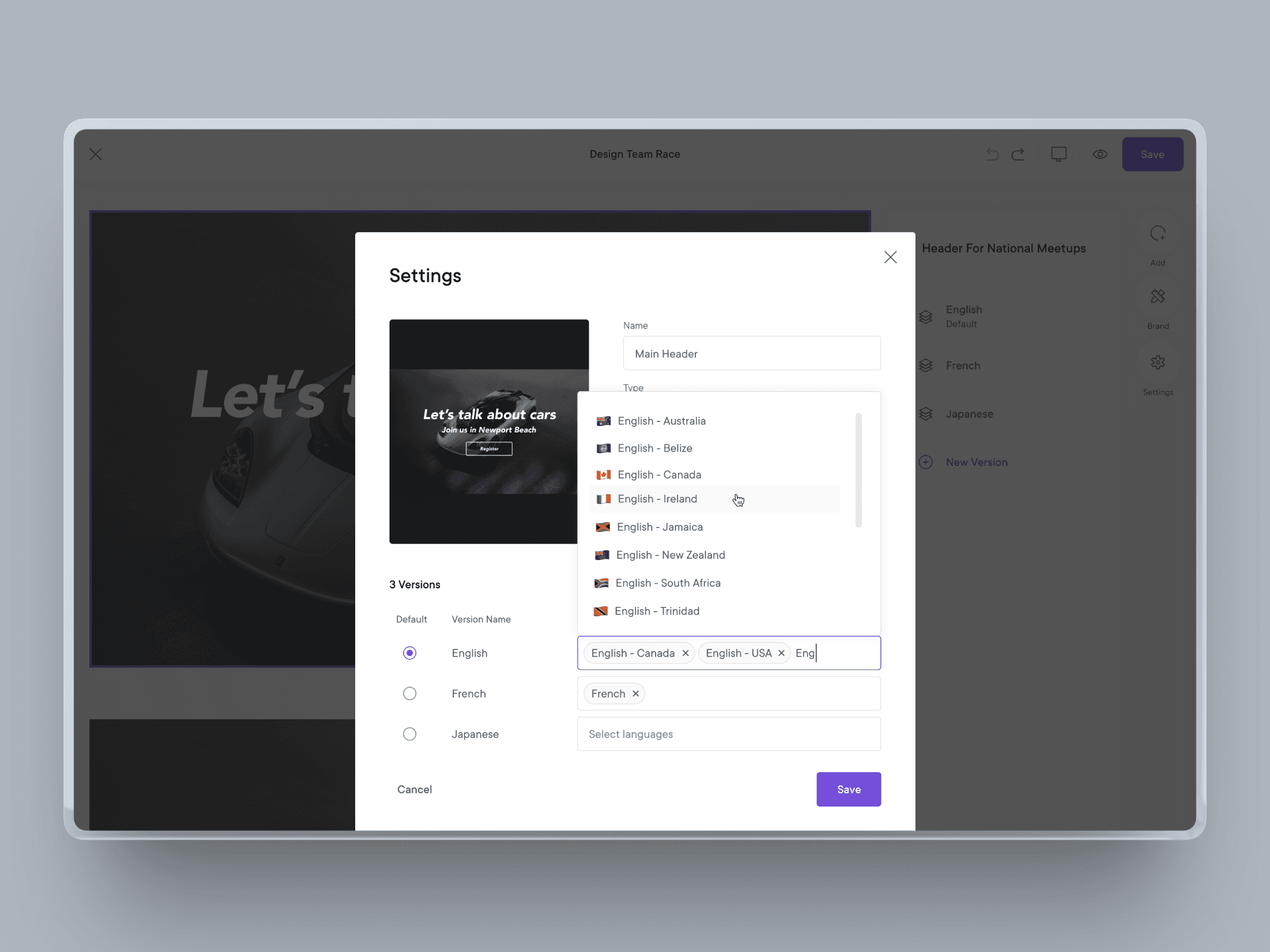 A complete UX overhaul of the event page and asset builder workflow. Focused on accessibility for non-designers, we introduced collaborative asset libraries and modern tooling based on user research.